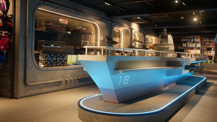 今年以來,泰達航母還相繼完成了“遇·艦”軍事主題購物空間、天橋海陸空天超級集合店等升級改造,店鋪匯聚了各類軍事主題文創、模型等產品,以主題環境氛圍提升優化游客購物體驗。新升級改造的店鋪自營業以來,收入同比實現翻倍增長,充分印證了場景煥新、業態創新的強大活力。