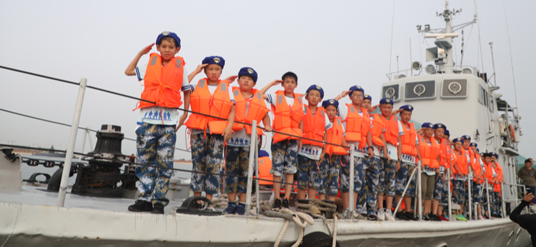 文化、海洋文化、紅色文化與學(xué)校的思政課、語(yǔ)文課、歷史課、地理課等學(xué)科知識(shí)深入融合,開創(chuàng)了“知行合一”的研學(xué)新模式:一是設(shè)置了涵蓋軍事安全、國(guó)土安全、科技安全等14個(gè)國(guó)家安全觀主題課程,打造了“航母安全逃生演練”“小小講解員——智慧城市”等10余個(gè)特色體驗(yàn)性活動(dòng),通過(guò)專業(yè)解說(shuō)員講解、互動(dòng)問(wèn)答、情景模擬等形式,讓學(xué)生們從“傾聽者”變?yōu)椤坝H歷者”,在互動(dòng)體驗(yàn)中理解國(guó)防與發(fā)展的深層聯(lián)系。二是推出了“夜宿驅(qū)逐艦”“高炮實(shí)操演練”“海軍旗語(yǔ)”等軍事主題深度體驗(yàn),讓青少年化身“小小海軍”,在紀(jì)律嚴(yán)明的環(huán)境中錘煉意志。通過(guò)“航母小小講解員”項(xiàng)目,學(xué)生可親身講述強(qiáng)軍故事,讓愛國(guó)情懷在表達(dá)中升華。