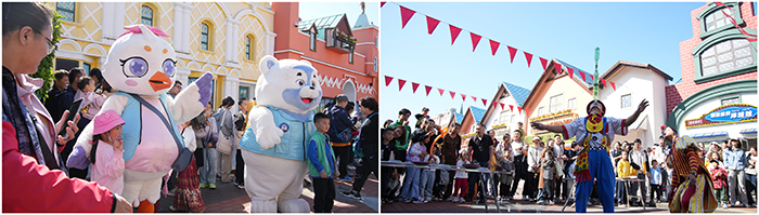 節日期間,王牌演出《航母風暴》《飛車特技》《極炫飛躍》《極限追逐》全天候輪番上演,7天共計演出57場,場場爆滿。文化商業街里航母吉祥物吉福、抱豹、妃妃快閃派對,小丑先生表演秀每天40余場不間斷與游客在街頭親密互動。主題活動區內,國慶主題手繪墻、創意打卡墻等活動吸引眾多親子游家庭參與,景區內處處洋溢著濃厚的節日歡樂氣氛。節日期間,游客們紛紛登航母、看軍艦,領略“航母編隊”的恢弘氣勢。此外,景區內數十種“海陸空”游藝項目,吸引諸多游客前來體驗。