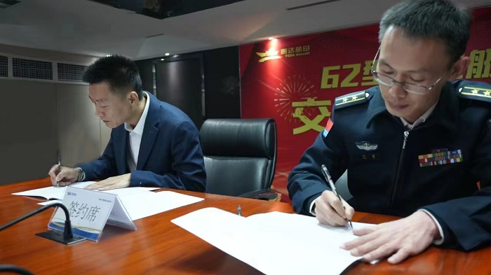 交接儀式上,海軍勤務學院首先宣讀了《關于提供海軍退役裝備用于國防教育和科研教學的通知》。隨后,在各方領導的見證下,海軍勤務學院與泰達航母簽訂交接協議,泰達航母作表態發言。