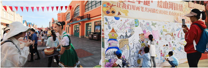 黃金周8天,園區(qū)內(nèi)各類演出124場輪番上演,為游客帶來豐盛的“文化大餐”。限時回歸的摩托車極限挑戰(zhàn)類演出《極炫飛躍》,與王牌演出《航母風(fēng)暴》《飛車特技》一同為游客帶來驚險刺激的感官體驗,演出場場爆滿、歡呼聲陣陣。俄羅斯風(fēng)情街上,面包蘸鹽·俄式最高歡迎禮、中秋“洋嫦娥”情景演繹以及俄羅斯風(fēng)情歌舞街頭秀,為游客帶來沉浸式異域風(fēng)情體驗。國慶主題互動打卡區(qū)內(nèi)手繪墻、點贊墻、打卡拍照墻、創(chuàng)意地面滾球抽獎活動吸引眾多親子游家庭參與。