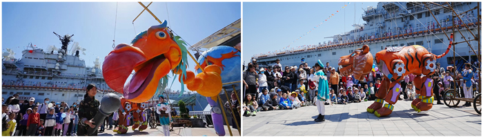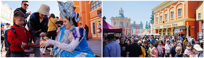 節(jié)日期間,“基輔號”航母、潛艇、驅(qū)逐艦上人頭攢動;全面升級的飛車特技表演場內(nèi)座無虛席、場場爆滿、歡呼陣陣;充滿童趣的巨型木偶劇表演,吸引眾多親子游家庭前往互動參與;俄羅斯風(fēng)情街舉行的“面包蘸鹽”俄式最高歡迎禮活動,讓游客深度體驗異域風(fēng)情;新增的護(hù)衛(wèi)艇巡航、漂移車等體驗項目吸引大批游客參與;水陸兩棲車、噴氣飛艇、摩托艇等水上項目排隊人流不斷;航母美食街、小吃大排擋等新增餐飲點美食云集、生意火爆,景區(qū)內(nèi)熱鬧非凡、一派繁華盛景。