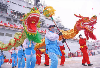 春節期間,泰達航母特邀十位津門非遺文化傳承人和民間手藝人登上航母,現場開展剪紙、糖畫、泥人創作等民俗活動,游客紛紛前來觀賞品玩。表演場內,國內頂尖汽車特技表演團隊華家班帶來精彩絕倫的特技表演,引來現場陣陣掌聲和歡呼?!盎o號”航母、潛艇、驅逐艦游人絡繹不絕。